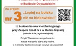 Projekt nr 3 „LEPIEJ NA BOISKU NIŻ NA BLOKOWISKU” - budowę boiska wielofunkcyjnego przy naszej szkole. Głosowanie potrwa od 9 do 22 września. Dziękujemy za Wasze głosy.