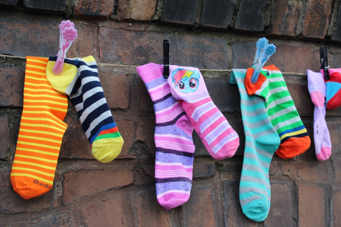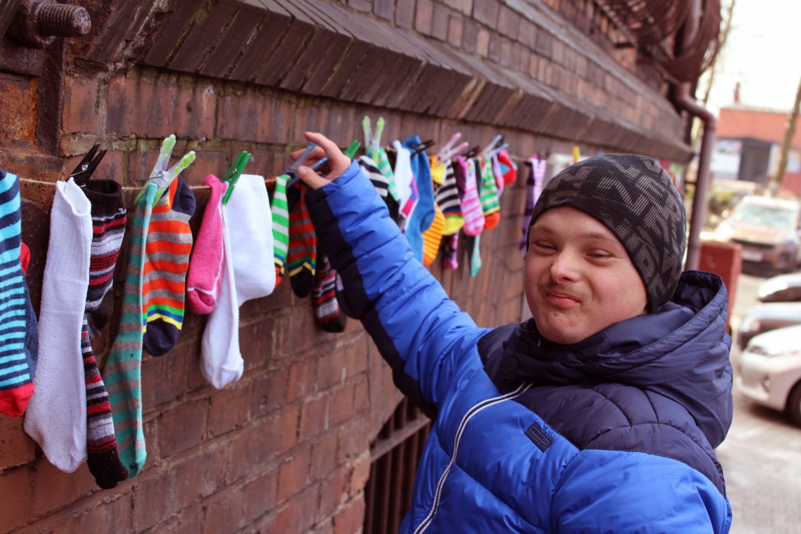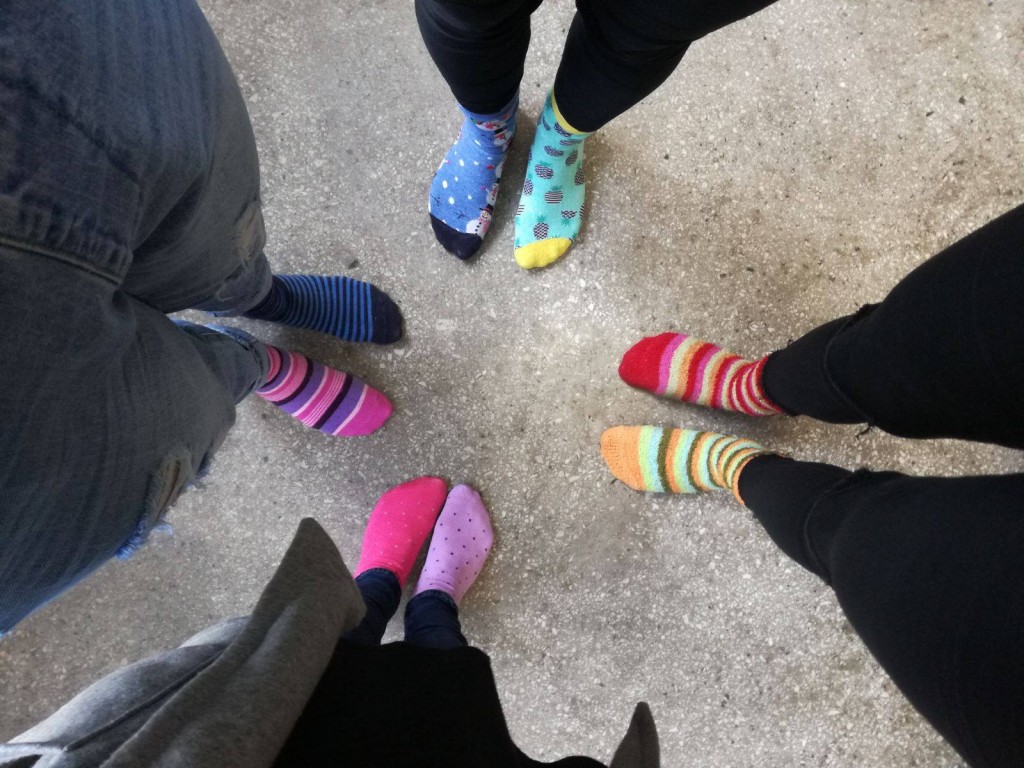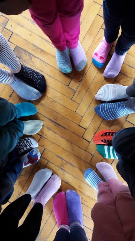 Kolorowe skarpetki nie do pary to symbol niedopasowania społecznego i genotypowego z jakim borykają się osoby z Zespołem Downa.