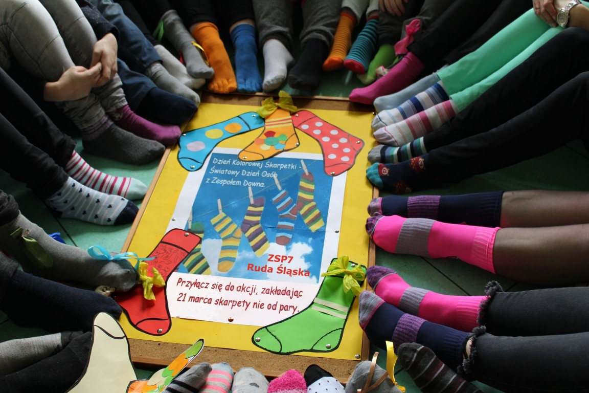 Dzień Kolorowej Skarpetki w Zespole Szkół Ponadgimnazjalnych nr 7 w Rudzie Śląskiej zorganizowany został w ramach kampanii edukacyjno-informacyjnej na rzecz osób z Zespołem Downa.
