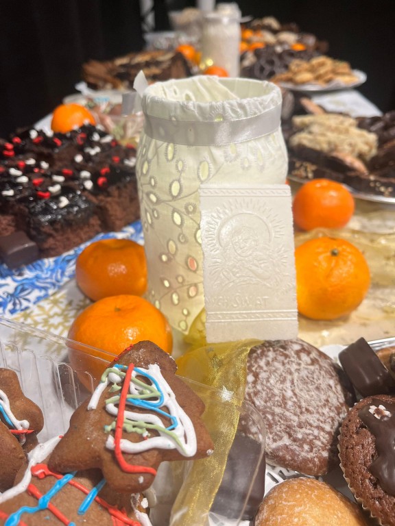 Następnie złożyliśmy sobie życzenia, dzieląc się opłatkiem. Częstowaliśmy się słodkimi wypiekami przygotowanymi przez nauczycieli, rodziców i uczniów.