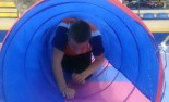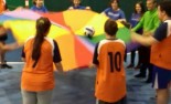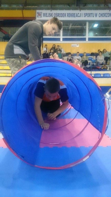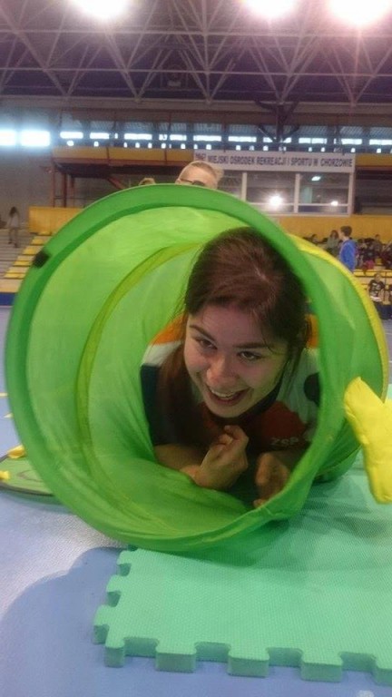 Ponieważ przybyliśmy na miejsce ze znacznym wyprzedzeniem, mieliśmy czas na rozgrzewkę pod czujnym okiem Sportowca Roku Rudy Śląskiej - pani Asi Bogusz. Następnie przystąpiliśmy do rozgrywek. Aby wygrać i otrzymać złote medale, musieliśmy pokonać 10 stacji. Wszyscy dzielnie ćwiczyli, wkładając w zmagania maksimum siły i wytrzymałości. Najbardziej podobały nam się zabawy z chustą oraz tory przeszkód, które pokonywaliśmy na różne sposoby, np. z wielką piłką na głowie. Bawiliśmy się świetnie i liczymy na powtórkę w przyszłym roku!
